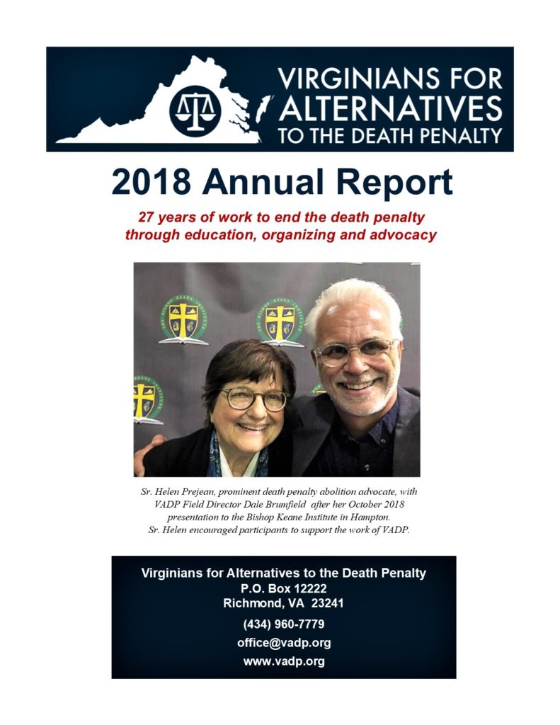 Virginians for Alternatives to the Death Penalty (originally Virginians Against State Killing) was formed in l991 when 22 individuals opposed to capital punishment met to work toward ending executions in the state. VADP is classified as a 501(c)(3) nonprofit organization.